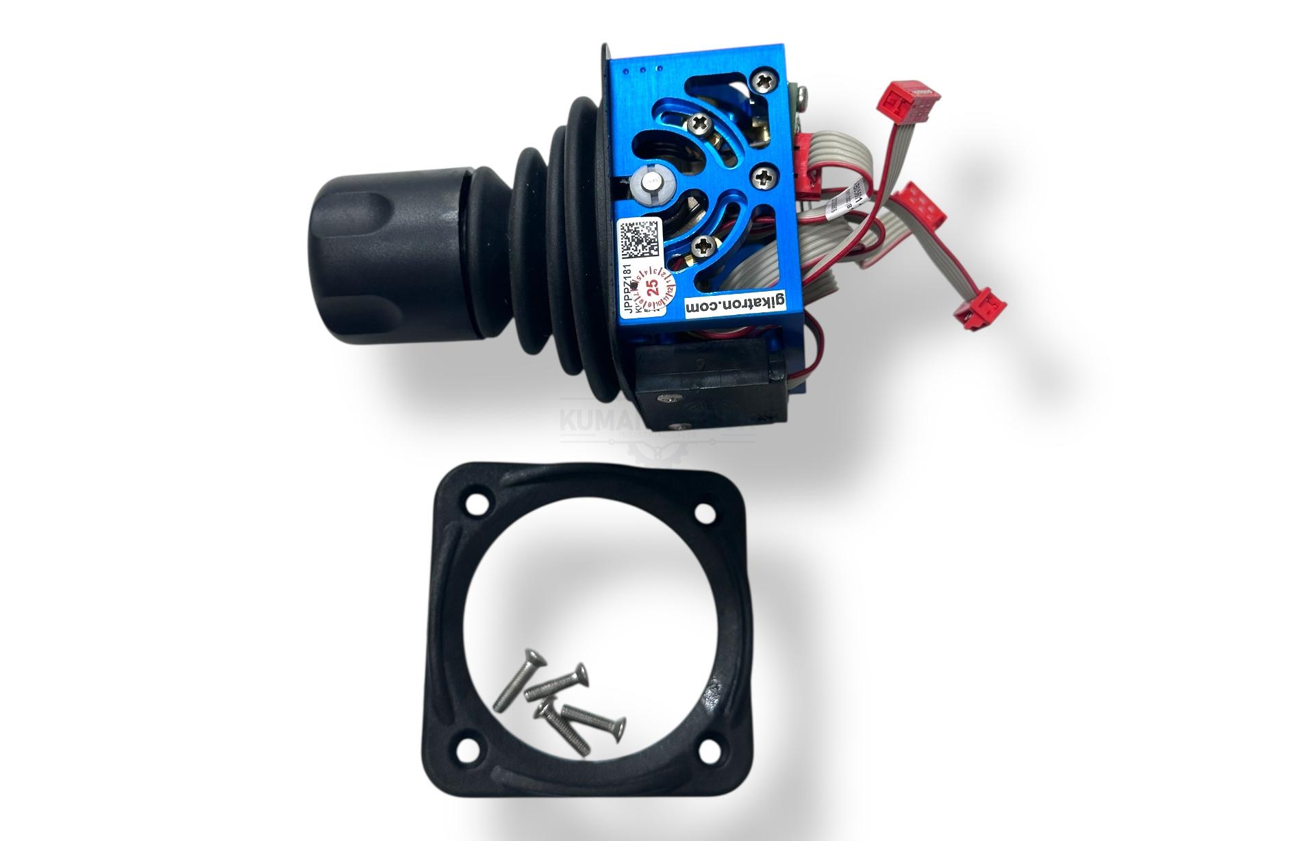 Ergonomik tasarımı sayesinde operatör konforunu maksimize ederken; sağlam ve uzun ömürlü yapısı zorlu endüstriyel çalışma koşullarına karşı dayanıklılık gösterir. Joystick, yüksek hassasiyetli hareket algılama özelliği ile makine sürüş yönü, hız ayarlaması ve araç ekipman fonksiyonlarının etkin kontrolünü destekler. Geniş çapta adaptasyon imkânı sayesinde farklı makina ve kumanda sistemlerine kolayca entegre edilebilir.