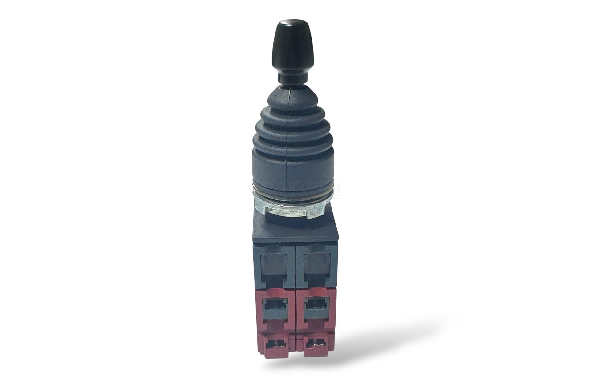Joystick on-off tipi kontak bloklar ile çalışır, yani her yön komutu bir açma/kapama sinyali üretir. Geri dönüşlü (spring return) olması sayesinde serbest bırakıldığında joystick kolu otomatik olarak orta konuma döner ve sistem güvenli bir bekleme haline geçer. Bu özellik, operatör kontrol hatalarının önlenmesine yardımcı olur.