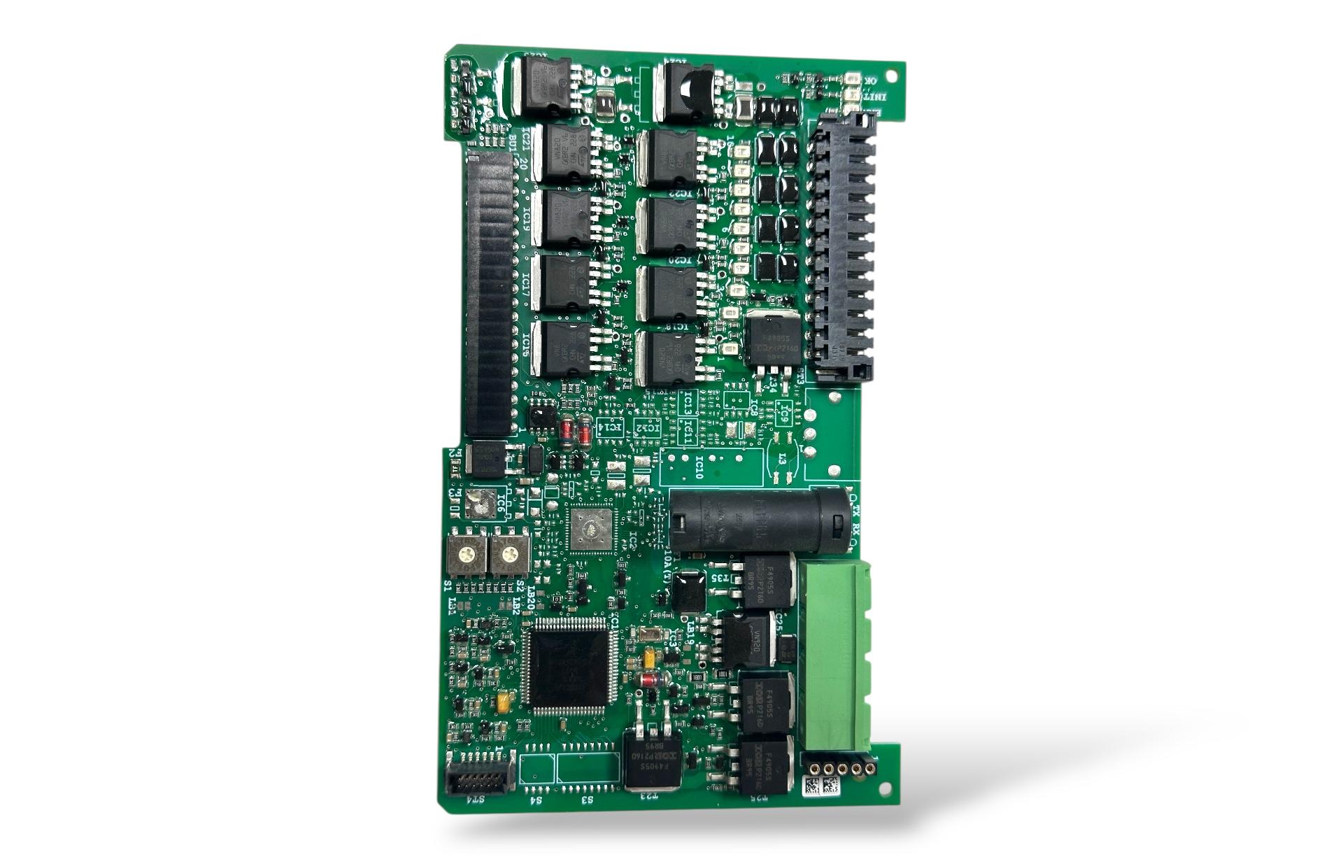HBC Radiomatic OE727140 mosfetli çıkış kartı, vinç kumanda sistemlerinde yük kontrolü ve sinyal çıkış yönetimi sağlayan yüksek performanslı endüstriyel karttır.