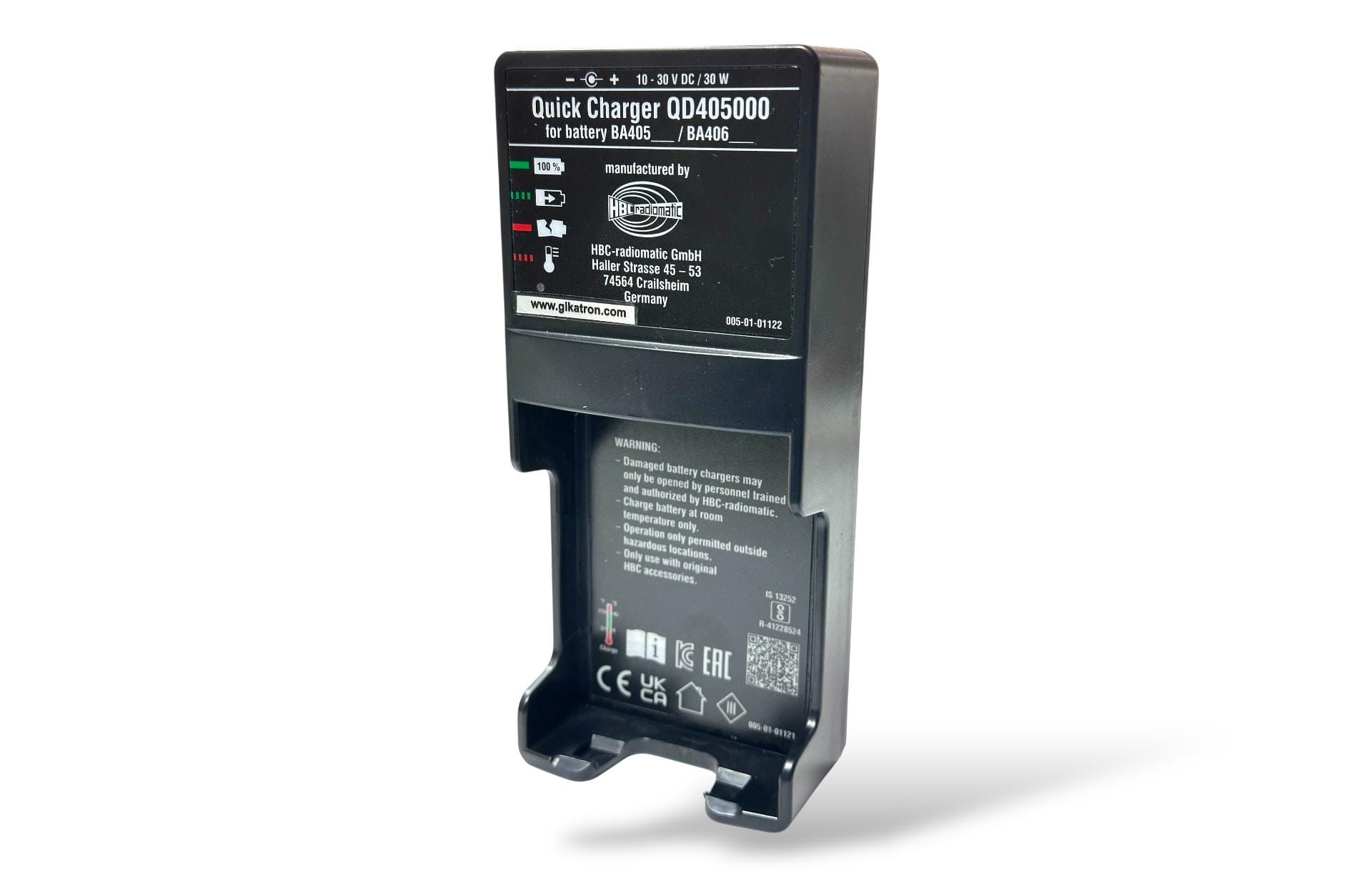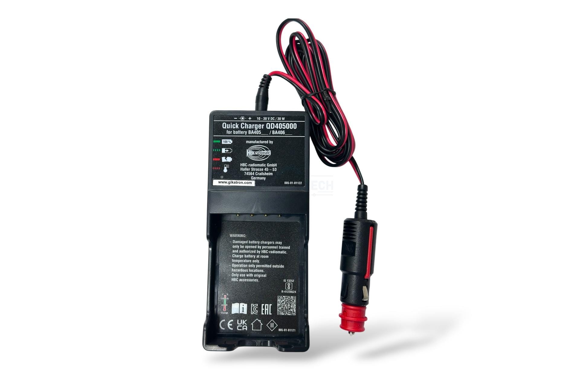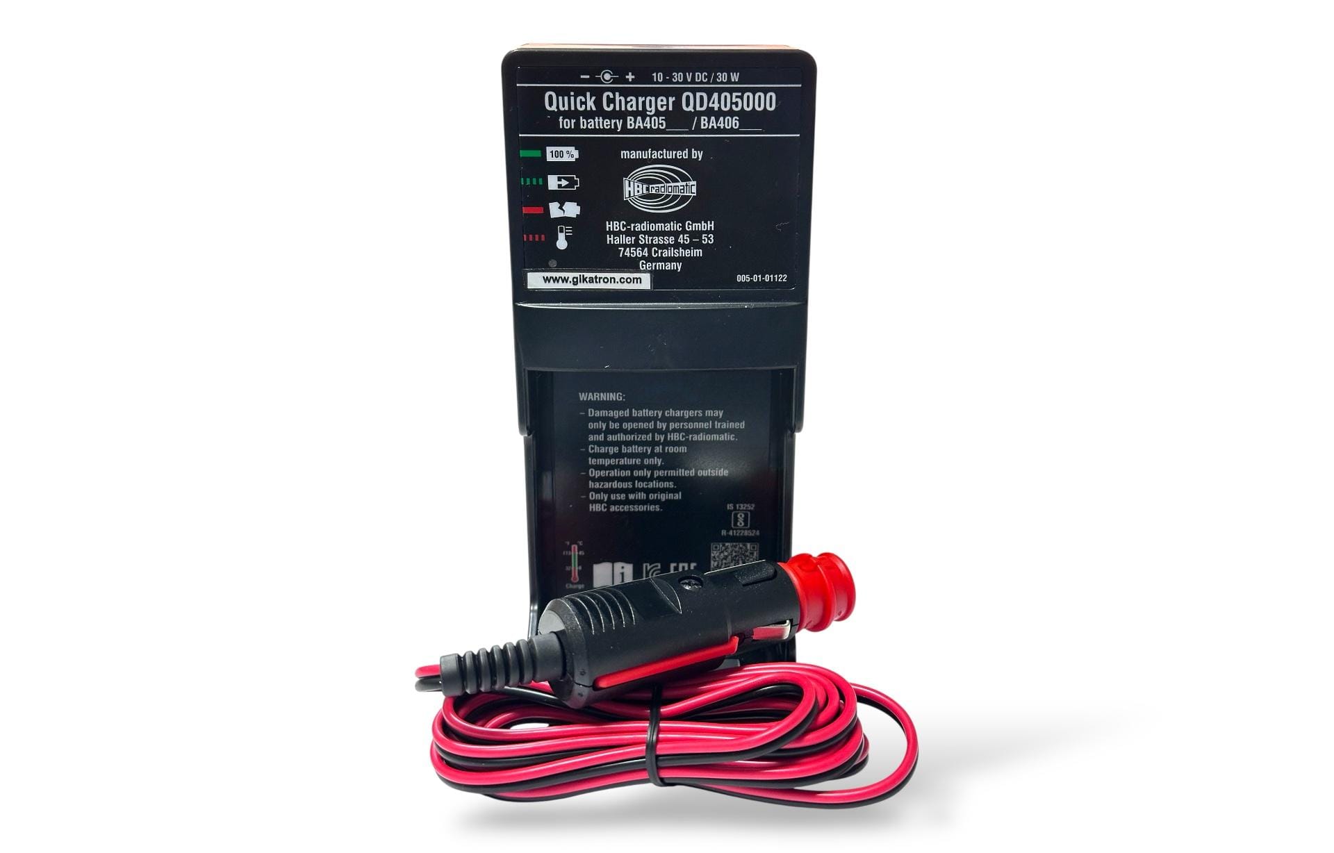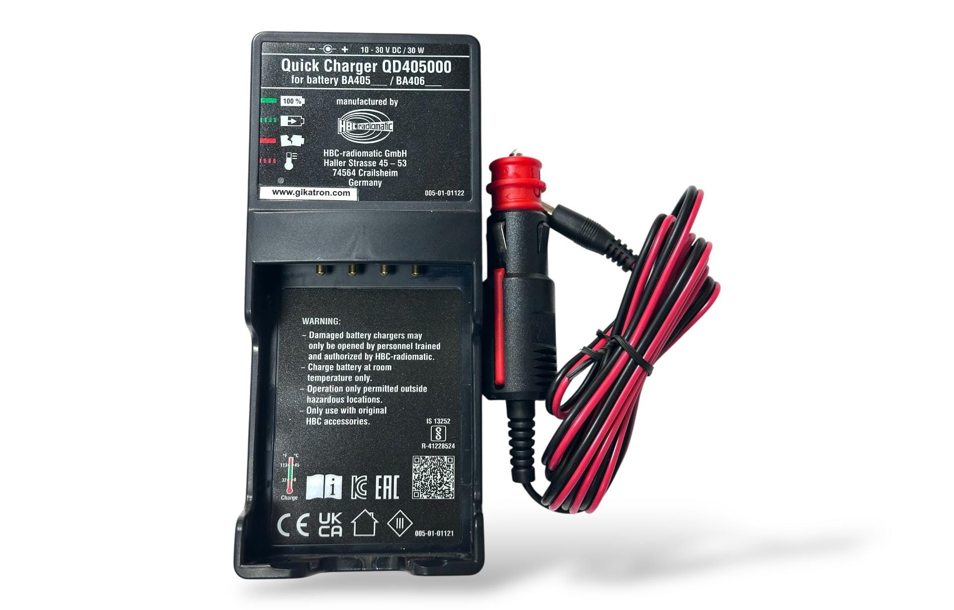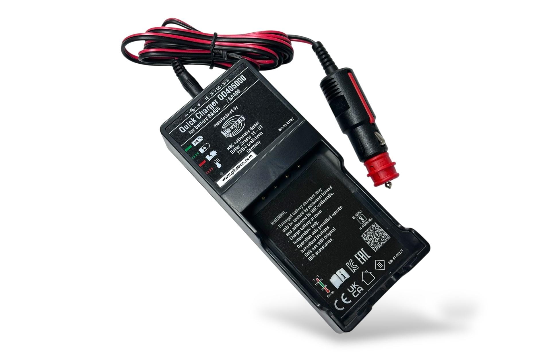 HBC Radiomatic QD405000, Putzmeister Ergo3 kablosuz kumanda bataryalarını DC 10-30 V aralığında hızlı ve güvenli şekilde şarj eden orijinal şarj cihazıdır. Kumanda performansını maksimum seviyede tutar.