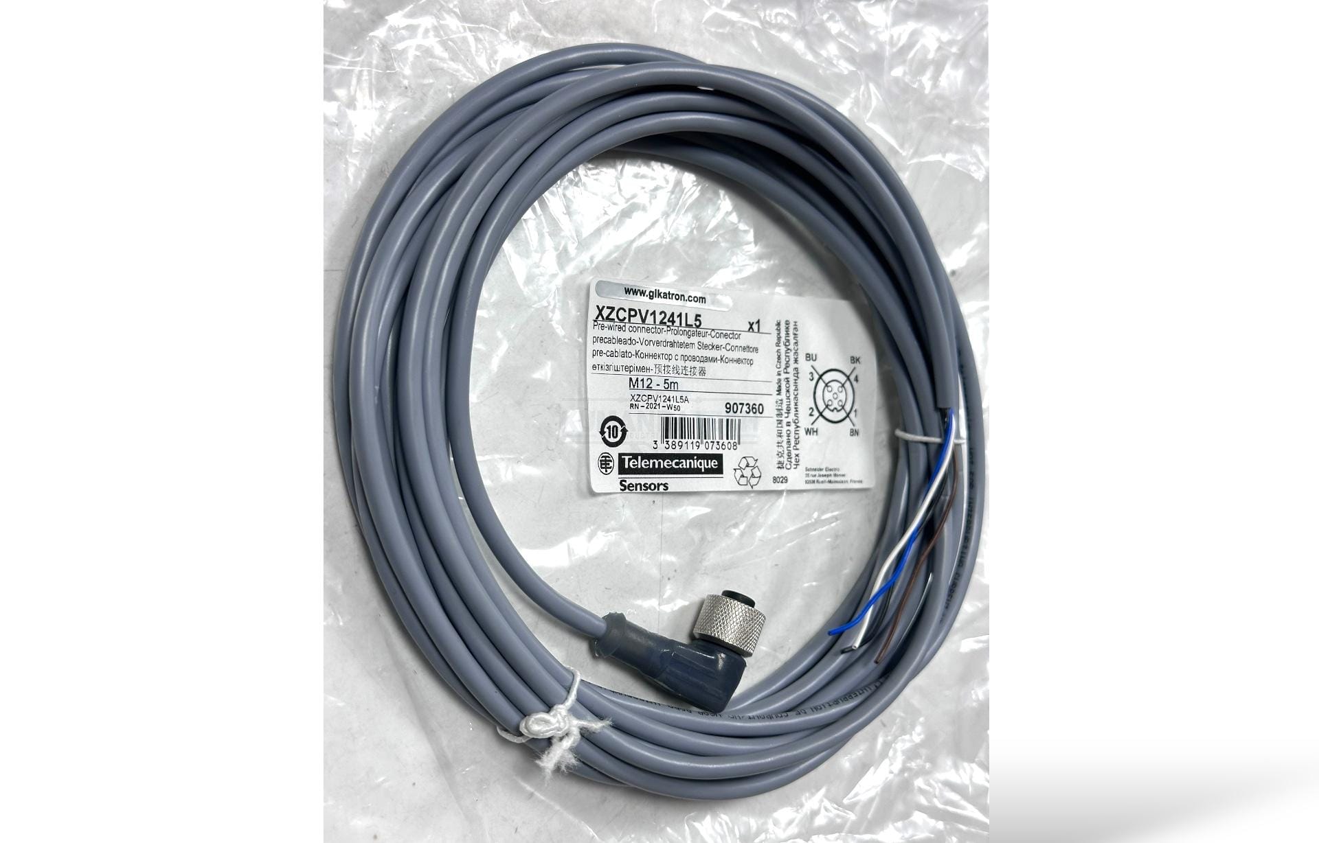 Telemeqanick XZCPV1241L5, 5 metre uzunluğunda, 4Pinli ve 4 kablolu M12 dişi sensör kablosudur. Endüstriyel otomasyon sistemlerinde sensör bağlantıları için güvenilir ve dayanıklı bir çözüm sunar.