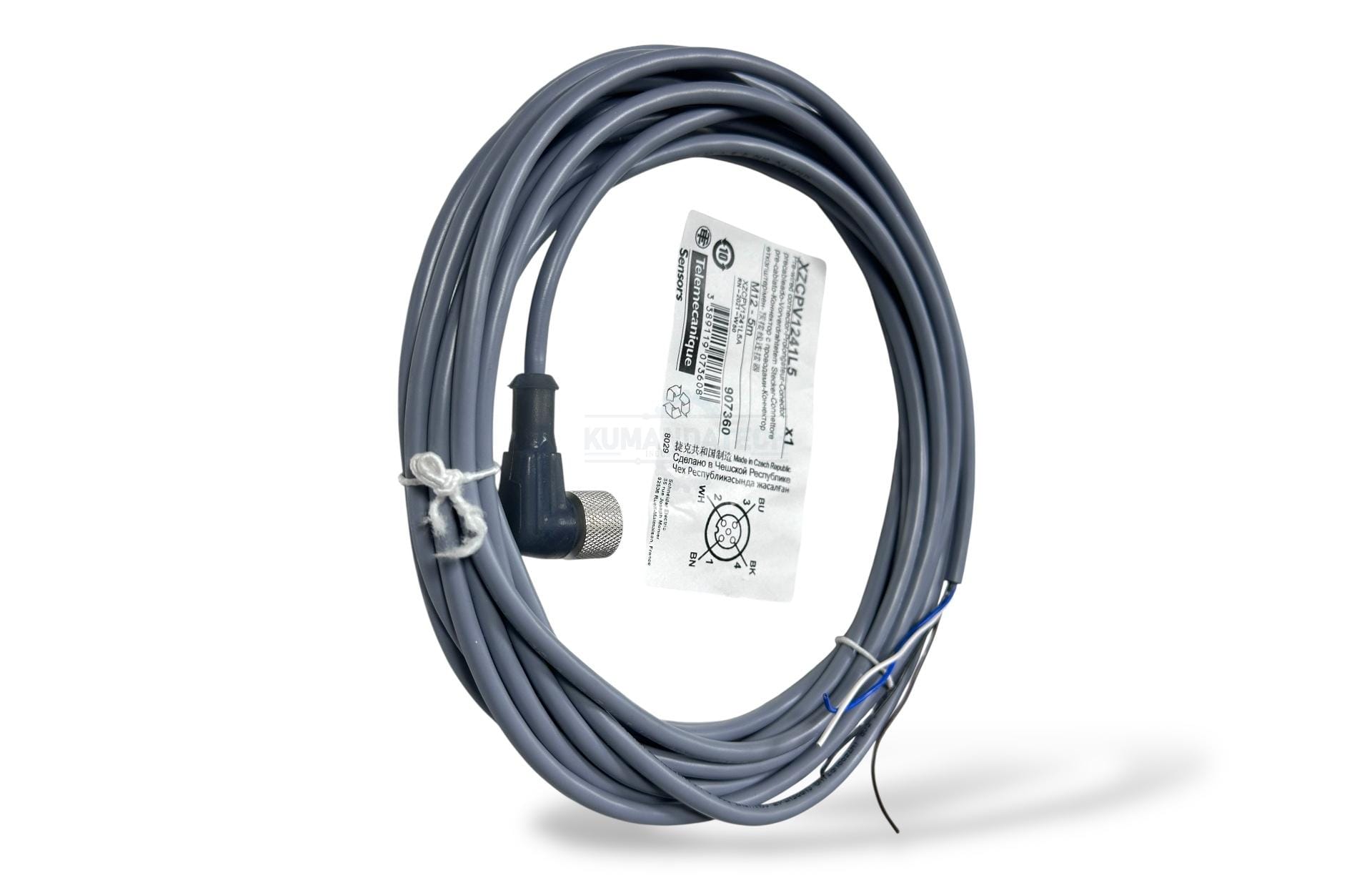 Telemeqanick XZCPV1241L5 | 5mt -90° 4Pin 4 Kablolu M12 Dişi Sensör Kablosu
